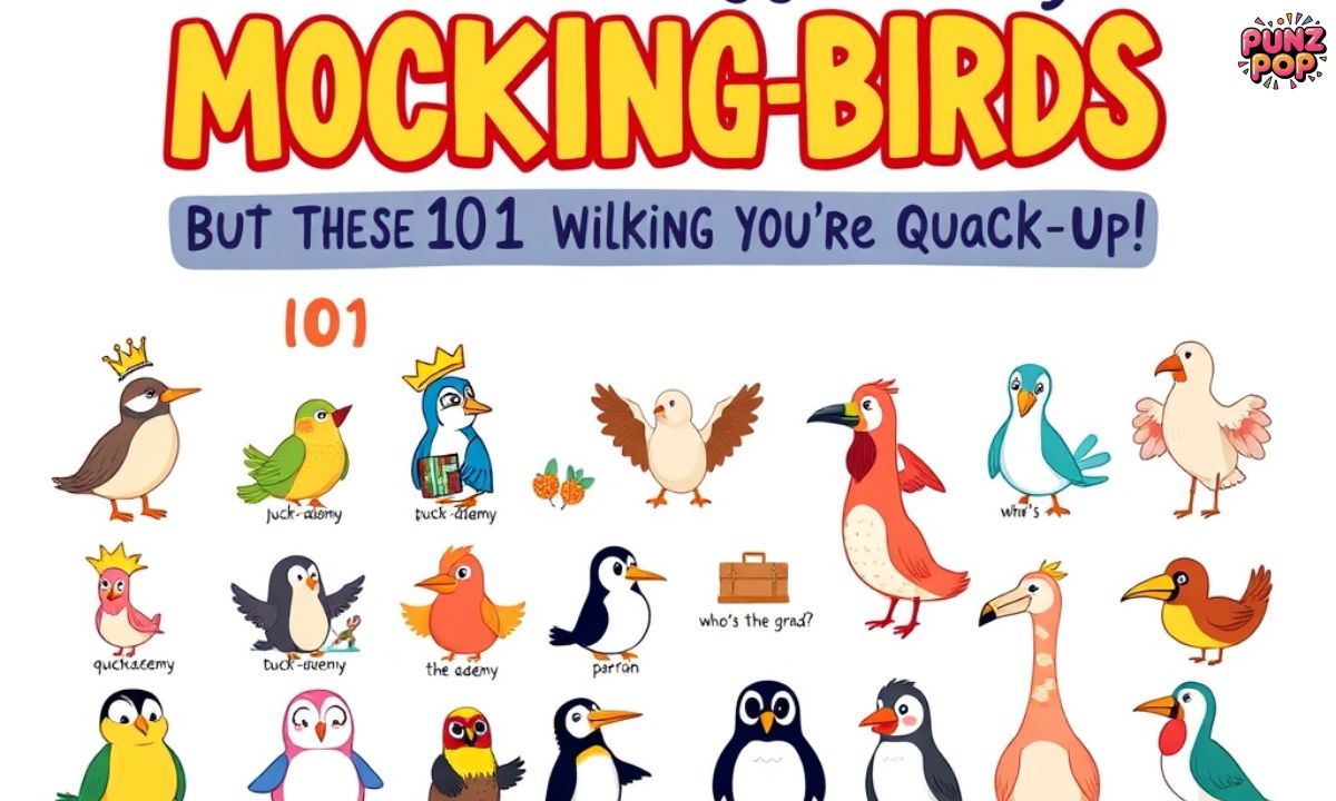 A clever play on words, a surprising twist, and a connection to familiar bird traits or sounds make the best puns.